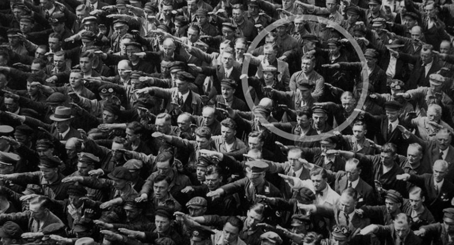 Na zdjęciu: August Landmesser, który odmówił wykonania salutu. Fot. Wikipedia