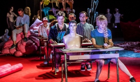 RECENZJA. Dante wyobrażał sobie Czyściec jako górę o kształcie ostrosłupa z ściętym szczytem, której jeden biegun wznosi się wśród oceanu. Na całej jej wysokości rozłożonych było 11 kolistych tarasów, 4 dolne jako rodzaj przedsionka, kolejne były Czyśćcem właściwym. Na każdym dusze oczyszczały się z jednego z grzechów głównych. Ten zestaw wyobrażeń Ewa Wycichowska w swoim spektaklu w Teatrze Logos włącza w spójny język sceny, w którym ruch jest ważny, ale nie najważniejszy. Pisze Łukasz Kaczyński.