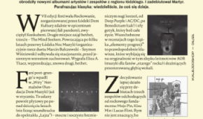 Z kolei w zakładce Archiwum naszego portalu znajdziecie już dostępne w PDF-ie wybrane artykuły tego numeru do przeczytania m.in. "Jeszcze filmowa?" Mieczysława Kuźmickiego, "Przywołując pramatki" - rozmowę Joanny Glinkowskiej z Gabrielą Poradą, oraz zajawki innych, w tym "Wizji czy fikcji?" Bogdana Sobieszka , czyli resume filmowości Łodzi oraz rozmowy miesiąca Piotra Groblińskiego z Małgorzatą Kosiec, której obrazy możecie oglądać na okładce oraz wewnątrz numeru.