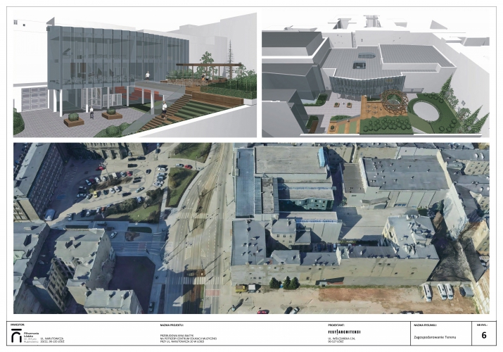 Budynek kina zostanie połączony z budynkiem filharmonii. Zagospodarowana i wypełniona zielenią ma być też przestrzeń obecnego wewnętrznego parkingu filharmonii. Tutaj powstanie charakterystyczny dla Łodzi podwórzec. Inwestycja zmieni więc architektonicznie kawałek Łodzi.