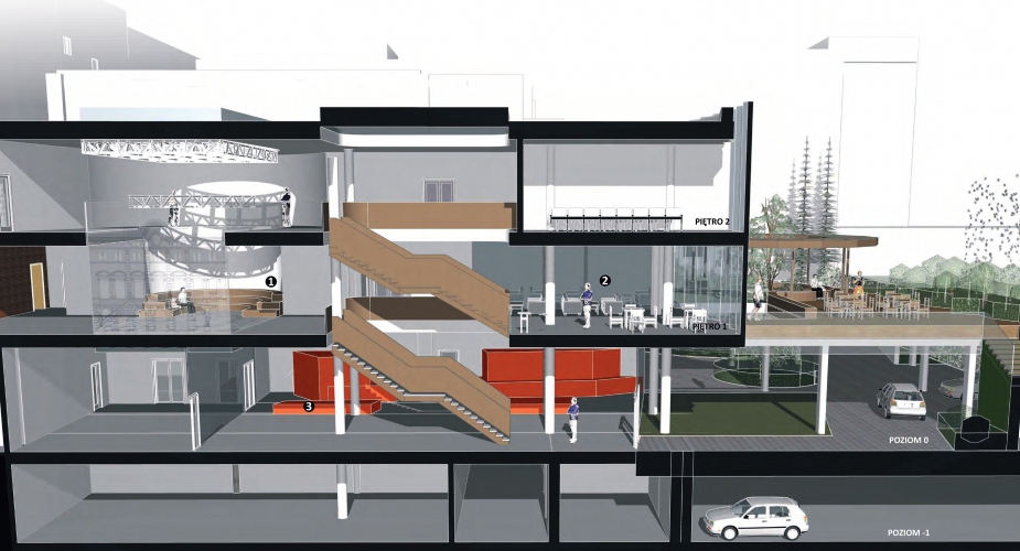 – Sala koncertowa będzie otoczona grodziami akustycznymi, aby odizolować ją od innych dźwięków. To umożliwi prowadzenie innych aktywności w sąsiadujących z nią przestrzeniach. Będą także pomieszczenia służące filharmonikom do ćwiczeń, dziś bowiem w budynku filharmonii do takich celów wykorzystywane są już nawet korytarze – tak się ta instytucja rozrosła. Każda z sal będzie pełniła także rolę pomieszczeń warsztatowych dla różnych innych muzycznych przedsięwzięć – opowiada Tomasz Bęben. – Powstaną poza tym: księgarnia muzyczna, kawiarnia i „pokój spokoju”, gdzie będzie można się wyciszyć, posłuchać muzyki…