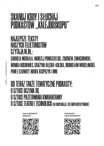Możecie też słuchać naszych najlepszych tekstów w interpretacjach aktorów scen łódzkich, z Łodzią i regionem związanych - na platformie "Kalejdoskop NaGłos": TUTAJ i TUTAJ
