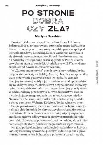 Powieść „Zakurzony język” tłumaczyły aż 22 osoby – ten pomysł podrzuciła sama Hanna Sukare. Tłumacze to studenci Sławy Lisieckiej, uczęszczający na seminarium, na które dostać się można za pośrednictwem konkursu tłumaczy literatury niemieckojęzycznej w ramach łódzkiego festiwalu Puls Literatury. Mamy więc jedną autorkę, 22 tłumaczy, wiele bohaterek i kilku bohaterów oraz, według subiektywnych obliczeń, pięcioro narratorów. Mimo tej mnogości język jest spójny, wszystkie opowieści mają podobny ton i ładunek emocjonalny, ale nie są też pozbawione subtelnej liryczności. Można więc odnieść wrażenie, że nad całością czuwa jedna główna postać, narratorka, pisarka, kobieta.