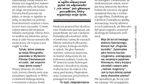 Nie umiem powiedzieć, w którym momencie pisania scenariusza dzieją się rzeczy najważniejsze dla przyszłego filmu. Dziś w ogóle więcej mam pytań niż odpowiedzi i „nie wiem” jest głównym porządkiem, który organizuje moje życie – mówi Jan Jakub KOLSKI w rozmowie z Bogdanem SOBIESZKIEM na krótko przed odebraniem w ŁDK złotej Glorii Artis, nie pomija także wątku filmów, które otworzyły jego filmografię, a powstały w Wytwórni Filmów Oświatowych w Łodzi, czy stosunku do głosów krytycznych wobec jego twórczości.