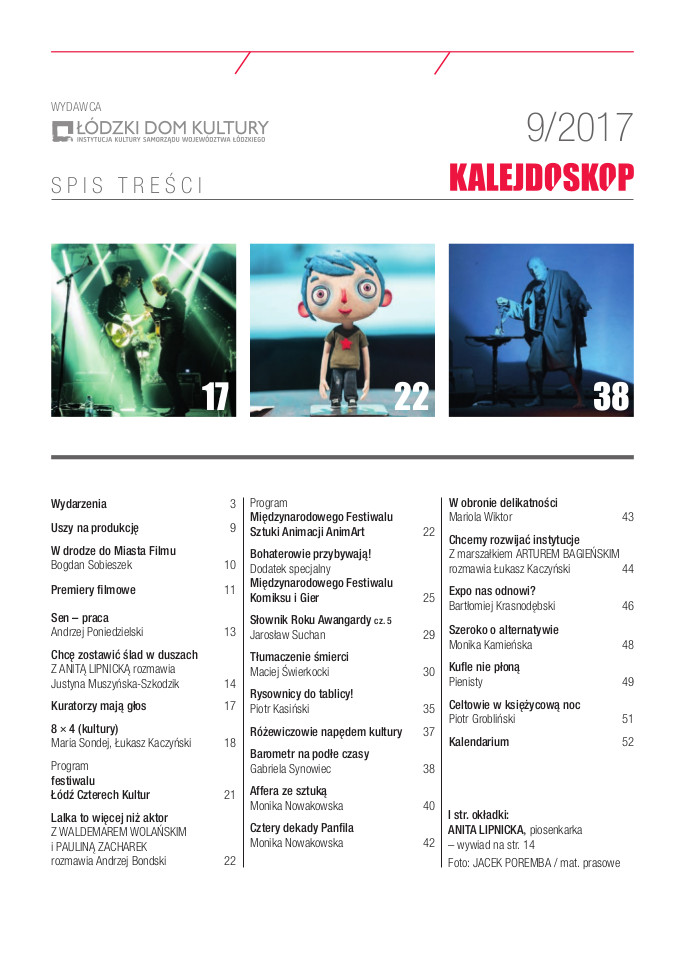 Wrześniowy KALEJDOSKOP już w sprzedaży. Szukajcie go w kioskach ruchu, Salonach Prasowych, Empiku i Łódzkim Domu Kultury. W najnowszym numerze, m.in.: