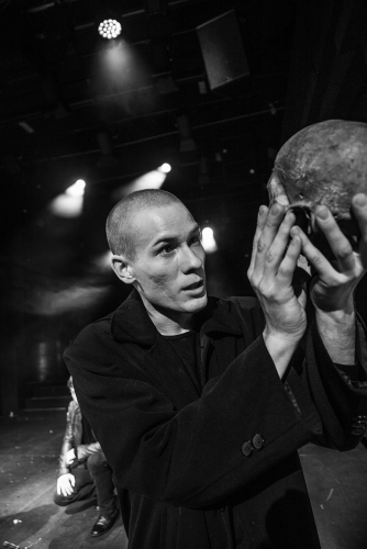 Na poziomie gry z tekstem jest to zaś spektakl wciągający, ubogość inscenizacji pozostawia aktorów niemal sam na sam z tekstem. Niemal jak odrębnym bohaterem. Wówczas zagranie bez fałszu, pozy i śmieszności kwestii, które właściwie mają już rangę popkulturowych szlagierów („Niech ryczy z bólu ranny łoś…”, „Być, czy nie być…”, „Słowa, słowa, słowa…”) staje się wielkim wyzwaniem. I faktycznie, nie brzmią one w ustach dyplomantów jak obcy im tekst, jak tekst pisany, ale czynią je częścią współczesnej im mowy. Czuć, że to ich sprawę się tutaj dyskutuje. W ogóle papier nie szeleści na scenie. Duże dokonanie. A jednak tworzy to wszystko rodzaj szczególnie rozumianego Teatru Tekstu, spektaklu wciąż przecież dyplomowego, w którym obecność aktora zamyka się w scenach dwójkowych, trójkowych, kilku zbiorowych i kilku monologach. To też jest zadanie, aktorskie wyzwanie – sam na sam z tekstem, z drugim aktorem, wobec blisko posadzonego widza. A jednak gdy brakuje „rozpychania się” w tekście przez inscenizację i narzędziem do tego pozostaje tylko aktor, to – paradoksalnie – zdaje się on być chwilami przez tekst przysłaniany. Ciekawy problem. Dla widza raczej teoretyczny, praktyczny dla dyplomantów – do rozwiązania za każdym razem od nowa, gdy będą wychodzić do „4 x Hamlet”. Obecność na „czystej” scenie jako szansa i zagrożenie. Jest więc świetny duet chłodnego stratega Klaudiusza (Dominik Mironiuk), który prawie do końca pozostaje reżyserem „widowiska”, i nie uległej mu, tylko rozumiejącej i akceptującej zasady spektaklu władzy Gertrudy (Julia Szczepańska). Jest Hamlet – dopiero zbierający się do wywrócenia teatralnego stolika (Artur Ziółkowski); obnażający reguły rządzące królestwem i spektaklem (Mikołaj Bartosiewicz); próbujący wypisać się z roli (Hubert Kowalczys); akceptujący ją, dążący do dopięcia dramatu (Michał Włodarczyk). Jest Ofelia (Julia Chatys), ale ani jej miłość, ani jej szaleństwo, którego znakiem ma być nagość, nieszczególnie istnieją dla podjętego problemu. Hamlet, choć zwielokrotniony, toczy swoją sprawę głównie ze sobą i wobec siebie.