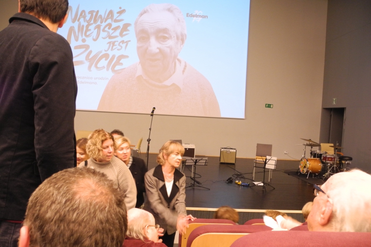 Na uroczystości 100-lecia urodzin Marka Edelmana pojawiło się tak dużo osób, że z braku miejsc siedziano na schodach lub stano pod ścianami. Przyszli współpracownicy ze szpitala im. Pirogowa, znajomi, sąsiedzi, przyjaciele, politycy i zwykli łodzianie zainteresowani postacią legendarnego dowódcy powstania w getcie warszawskim wiosną 1943 roku.