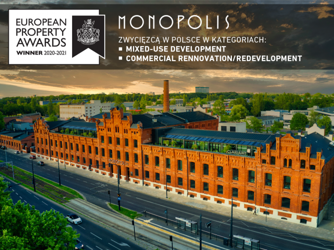 Monopolis nagradzaneWyczekiwanym i ziszczonym sukcesem Monopolis jest prestiżowa nagroda w międzynarodowym konkursie MIPIM Awards 2020 zwana też Oscarem nieruchomości. Rewitalizacja łódzkiego obiektu wygrała w kategorii „mixed-use”, deklasując 228 innych projektów z 45 krajów. Była też jedyną nominowaną inwestycją z Europy, a w finale pokonała Singapur, Bangkok i Montreal. Dzięki pracy Grupy 5 Architekci dawne zakłady stały się nowoczesną przestrzenią dla biur, oferując unikatowy klimat, różnorodne lokale gastronomiczne, ale też przestrzenie dla kultury - teatr na Scenie Monopolis i przestrzenie wystawiennicze w ARTgalerii, klub dla dzieci, amfiteatr.
