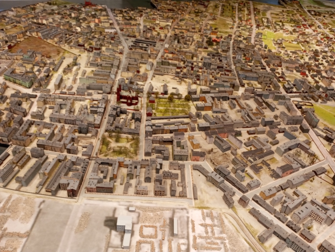 Na makiecie i cyfrowym planie zaznaczono dzisiejszą Manufakturę. – To jest wygodne zarówno dla łodzian, jak i osób przyjezdnych, bo to miejsce znane i łatwe do identyfikacji – mówi kierownik oddziału. – Osoby, których rodziny przebywały w getcie, poszukują konkretnych lokalizacji. Jednym wystarczy świadomość, że dom stoi, inne chcą na własne oczy zobaczyć to miejsce, a ponieważ nie zawsze te budynki jeszcze istnieją, to u nas mogą „obejrzeć” miejsce związane z rodzinną historią.