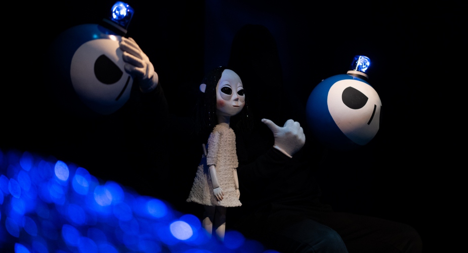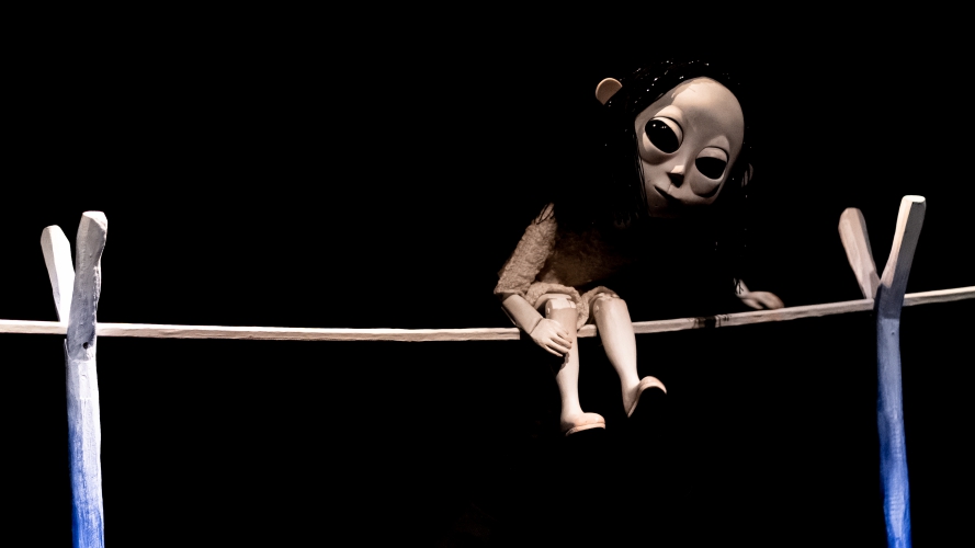 RECENZJA. Nabu jako lalka to głównie głowa i nogi. Głowa nieco za duża, ale dobrze widoczna, gdy podczas animacji oddaje szereg towarzyszących dziewczynce emocji. I nogi – bo Nabu wędruje. Przez nie wypowiada się na scenie ponoszony przez dziecko trud. O premierze w Teatrze Lalek Arlekin pisze Łukasz Kaczyński.