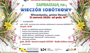 W Wincentynowie w gminie Sławno 21 VI będzie wieczór sobótkowy. Początek głównej części wydarzenia, pełnego rozmaitych atrakcji, o godzinie 18.30. Wcześniej, od godziny 16.00, zaplanowano warsztaty z wicia wianków w skansenie „Niebowo”. Sobótki w Wincentynowie, to nie jedyne atrakcje jakie w regionie przygotowano na najkrótszą noc w roku.