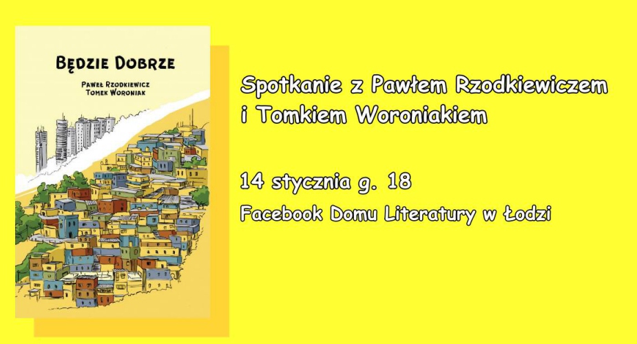 Na Facebooku Domu Literatury odbędzie się spotkanie z autorami komiksu "Będzie dobrze" (Timof i cisi wspólnicy, 2020) - Pawłem Rzodkiewiczem i Tomkiem Woroniakiem. Spotkanie poprowadzi Marcin Bałczewski.