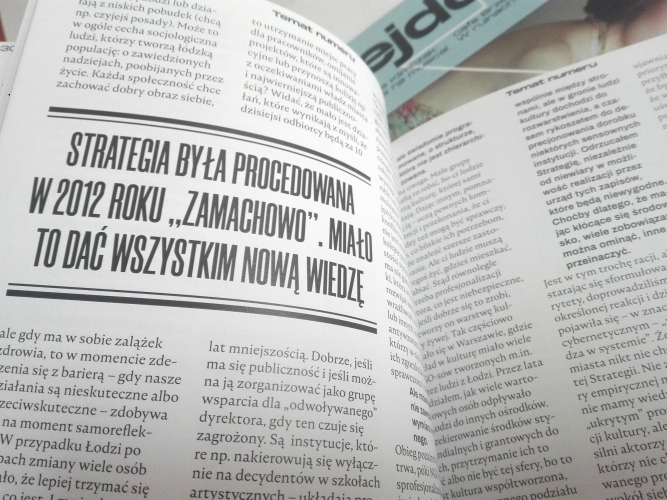 Nie. Do tego były też pewne założenia: kultura ma piętra; chcemy, by łódzka kultura nawiązywała kontakt z czołówką instytucji w kraju; by twórcy działali w obiegu międzynarodowym, bo to ważne dla metropolitalnego miasta; są pewne właściwe dla niej tradycje (filmowe i awangardowe), które są „kapitałem symbolicznym” miasta i na bazie tego dziedzictwa trzeba coś dalej tworzyć. Nie było jednak poważnych badań empirycznych profilu odbiorców kultury. Bez echa pozostały pytania o finansowanie kultury w dalszej, wieloletniej perspektywie. Dla decydentów było kluczowe, żeby powstał dokument. Bo takie strategie mają miasta, które pretendują do pozycji miast metropolitalnych. Po czym dokument poszedł do szuflady. A Magistrat odetchnął z ulgą. Nikt nie chciał na serio rozmawiać o tym, czy przybliżamy się od realizacji celów, czy dobrze je wyznaczyliśmy.