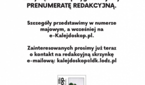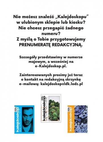 Cały artykuł do przeczytania w "Kalejdoskopie" 04/20. Do kupienia w Łódzkim Domu Kultury (podczas kwarantanny instytucja jest zamknięta dla gości), punktach Ruchu S.A., Kolportera, Garmond-Press w salonach empik i łódzkiej Księgarni Ossolineum (Piotrkowska 181). A także w prenumeracie (w opcji darmowa dostawa do wybranego kiosku Ruchu): TUTAJ