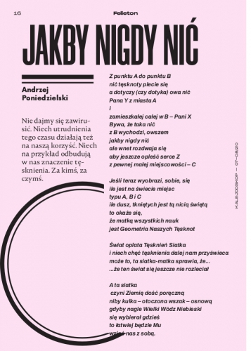 Cały felieton do przeczytania w Kalejdoskopie 07-08/20, do kupienia w Łódzkim Domu Kultury, punktach Ruchu S.A., Kolportera, Garmond-Press w salonach empik i łódzkiej Księgarni Ossolineum (Piotrkowska 181). A także w prenumeracie: