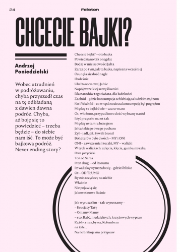 Cały wywiad w "Kalejdoskopie" 05/20, którego tematem jest "Sztuka w izolacji". Do kupienia w Łódzkim Domu Kultury (w czasie kwarantanny instytucja pozostaje zamknięta dla gości), punktach Ruchu S.A., Kolportera, Garmond-Press w salonach empik i łódzkiej Księgarni Ossolineum (Piotrkowska 181). A także w prenumeracie (w opcji darmowa dostawa do wybranego kiosku Ruchu): TUTAJ oraz w preferencyjnej prenumeracie redakcyjnej TUTAJ