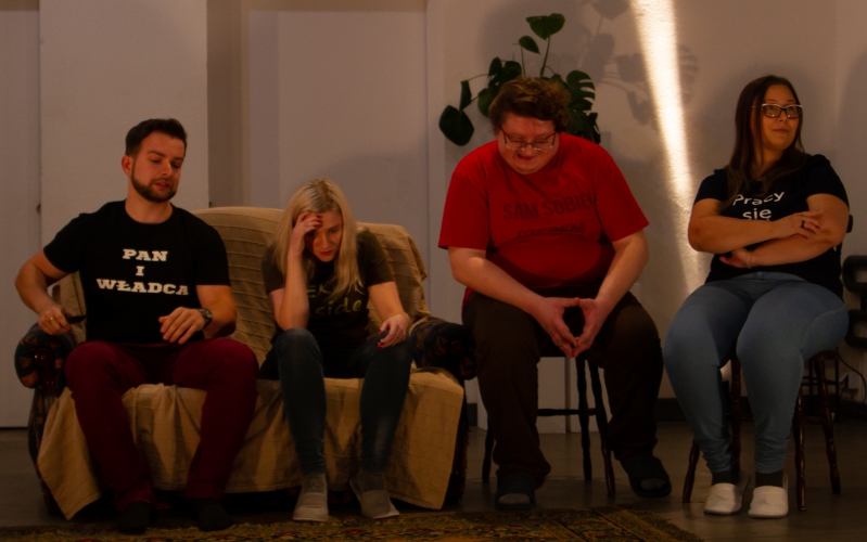 Twórcy nie używają projekcji multimedialnych z efektami świetlnymi czy dźwiękowymi. To ciekawe, że młodzi artyści, zapewne obyci z technologią znacznie bardziej niż starsze pokolenia, tworzą tradycyjnie pojmowany teatr: piszą własne teksty, które można uznać za próbę stworzenia współczesnego dramatu mieszczańskiego, z całkiem udanymi elementami komediowymi. Jednocześnie stanowi to ogromne wyzwanie, bo aktorom debiutantom nie jest łatwo udźwignąć ciężar spektaklu, opartego głównie na prowadzeniu dialogów. Zdecydowanie najbardziej naturalnie wypada Ewa Hofmann-Psuty jako Iga, tworzona przez nią postać, w różnych wersjach, pozostaje wiarygodna. Cała grupa miała trudny początek, ale „rozkręcała się” ze sceny na scenę. Do przemyślenia pozostaje eksploatowanie podobnych środków aktorskich przez niemal cały czas trwania spektaklu, np. w konstruowaniu postaci Teresy.