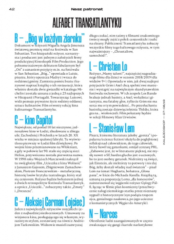 Nieznane fakty, znaczące konteksty i kulisy organizacji 9. Międzynarodowego Festiwalu Filmowego Transatlantyk przybliża przygotowany przez nas alfabet. C jak Capitol, L jak Lem, N jak Narcos.