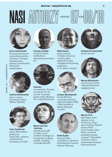 Całość w wakacyjnym "Kalejdoskopie" numer 07-08/19. Pismo do kupienia w Łódzkim Domu Kultury, punktach Ruchu S.A., Kolportera, Garmond-Press i salonach empik. A także w prenumeracie (w opcji darmowa dostawa do wybranego kiosku Ruchu): TUTAJ. Nie możesz kupić "Kalejdoskopu" w swojej okolic? Napisz na kalejdoskop@ldk,lodz.pl, spróbujemy rozwiązać ten problem.
