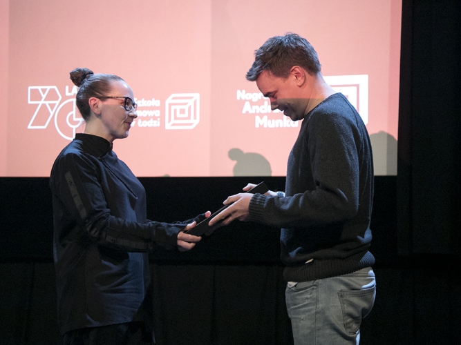 – Jest dla nas rzeczą bardzo ważną, żeby zapobiegać procesowi (albo chociaż go opóźniać), w którym film powoli coraz bardziej staje się towarem - mówił rektor Mariusz Grzegorzek podczas uroczystości ogłoszenia wyników konkursu. - Nawet filmy autorskie padają pod naporem przemysłu, zwichniętego mentalu ludzi, którzy o losie tych filmów decydują, chociaż bardzo często niewiele o nich wiedzą. Staramy się zachęcić naszych studentów, żeby uderzali od początku. Na przekór teorii, która mówi: „najpierw się naucz, nabij sobie rękę, zrób jakiś serial, wtedy będziesz gotowy, żeby zrobić coś dziwnego". Myślę, że to jest błędna koncepcja. Uderzać trzeba od samego początku, a najlepiej od początku do końca. Dlatego pielęgnujemy tę nagrodę, bo kibicujemy młodym ludziom, którzy mają energię i odwagę, a przy okazji trafili na sprzyjające okoliczności, żeby robić filmy tworzone własnym charakterem pisma, filmy ważne, otwierające jakiś rozdział, z hukiem albo niepostrzeżenie. Chcemy tym ludziom się przyglądać i dawać im znak „jesteśmy z wami” i że ich filmy są naprawdę potrzebne.W konkursie, który odbywa się co dwa lata, wzięło udział 17 pełnometrażowych filmów fabularnych. Debiuty oceniało jury w składzie: Bogdan Dziworski (fotograf, operator, reżyser i scenarzysta), Jan Komasa (reżyser filmowy, twórca „Sali samobójców” i „Miasta44”), Bronka Nowicka (artystka interdyscyplinarna, pisarka uhonorowana Nagrodą Literacką NIKE), Maria Ornaf (studentka Wydziału Reżyserii Filmowej i Telewizyjnej Szkoły Filmowej w Łodzi), Adam Suzin (student Wydziału Operatorskiego i Realizacji Telewizyjnej) oraz laureaci poprzedniej edycji konkursu: autor zdjęć - Paweł Chorzępa (nagrodzony za zdjęcia do filmu „Zud” Marty Minorowicz) oraz reżyser - Joaquin del Paso (nagrodzony za reżyserię filmu „Maquinaria Panamericana”).