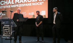 – Wychowałem się na twoich zdjęciach, więc to ogromny zaszczyt przyjmować nagrodę od ciebie - powiedział Michał Marczak. - Nie dostałem się do łódzkiej szkoły, potem musiałem nauczyć się filmu sam. W ten sposób życie zatoczyło koło. Chciałbym podziękować Maćkowi Twardowskiemu, który był współautorem zdjęć do tego filmu i miał już swój debiut, więc nie może stanąć tu razem ze mną. Pani Dorota Wardęszkiewicz, montażystka „Wszystkich nieprzespanych nocy”, jest osobą, dzięki której mam poczucie, że byłem w tej szkole i że ją skończyłem. Od niej dowiedziałem się wszystkiego, co wiem o filmie. Zawdzięczam jej karierę – pięć lat i trzy filmy, które razem zmontowaliśmy.
