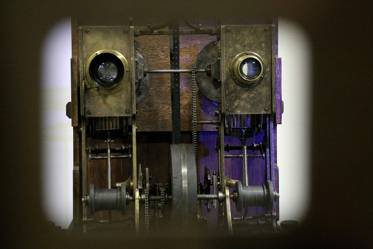 Najbardziej oczywiste było, że projekcja odbywała się z dwóch taśm puszczonych tak, żeby klatki wyświetlały się naprzemiennie. Mamy dwa obiektywy, klisza krąży w pętli. Źródłem światła jest standardowa latarnia z lampami łukowymi. Wynalazca zastosował dwa obiektywy, żeby wyeliminować drgania obrazu. W momencie, kiedy jeden obiektyw jest przesłonięty i następuje przesuw taśmy do następnej klatki, obraz wyświetlany jest z drugiego obiektywu i tak na przemian. Filmowanie odbywało się prawdopodobnie przez jeden obiektyw. Na mechanizm nakładana była osłona, która chroniła negatyw przed prześwietleniem.