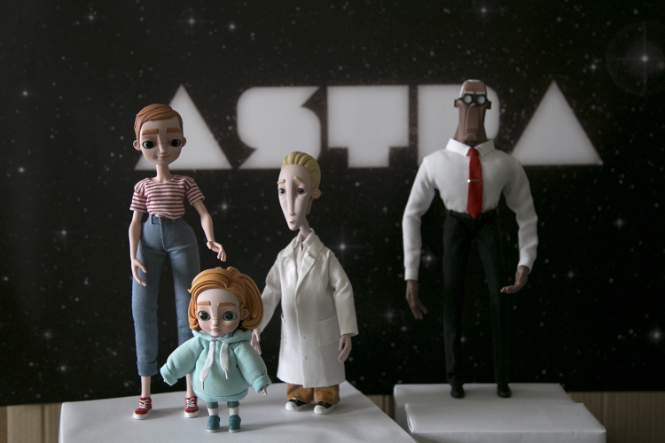 Jak w każdej produkcji filmu realizowanego w technice stop motion, na początku były rysunki przedstawiające bohaterów – Astrę, jej siostrę Annę, naukowca i jego asystenta oraz ojca Astry i złotą rybkę, która towarzyszy dziewczynce w podróży. Potem z pomocą Piotra Knabe, doświadczonego twórcy lalek, powstały projekty wykonawcze. Następnie zespół w składzie Piotr Knabe, Dariusz Kalita, Agnieszka Mikołajczyk i Agnieszka Smolarek stworzył lalki: konstrukcję animacyjną, czyli szkielet, który pozwala lalce poruszać się (wybitnym specjalistą w tej dziedzinie jest Dariusz Kalita), głowy wykonane w technice druku 3D, ciała – z gąbki i odlewów silikonowych. Zaprojektowano też wymienne elementy twarzy (różne ułożenie brwi i kształtu czoła, różne warianty ust, np. w uśmiechu albo zdziwieniu), przyczepiane na małe magnesy. To dzięki nim można będzie tworzyć (animować) mimikę twarzy – bohater może zrobić 60 min. Kostiumerki Beata Jarmuż-Socha (kostium taty) i Anna Szcześniak zadbały o miniaturowe kostiumy. Wszystko trwało około trzech miesięcy.
