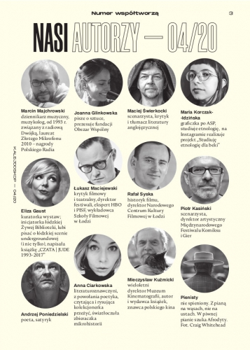Cały felieton do przeczytania w "Kalejdoskopie" 04/20 do kupienia w Łódzkim Domu Kultury (w czasie kwarantanny instytucja pozostaje zamknięta dla gości), punktach Ruchu S.A., Kolportera, Garmond-Press w salonach empik i łódzkiej Księgarni Ossolineum (Piotrkowska 181). A także w prenumeracie (w opcji darmowa dostawa do wybranego kiosku Ruchu): TUTAJ bądź w prenumeracie redakcyjnej TUTAJ