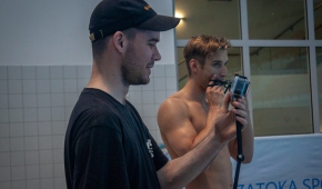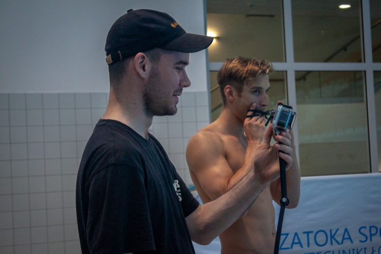 Zapytałem Filipa o reportaże. Czy studenci mogą dowolnie wybierać temat, czy dostają jakieś sugestie? Jak można się domyślić, wykładowcy cenią inwencję. Pokazy tych filmów są publiczne, tak samo ich ocena – inaczej jest na reżyserii, gdzie filmy oceniane są za zamkniętymi drzwiami. Tematyka jest raczej dowolna. Filip postawił na coś bliskiego swojemu sercu, ale też ważnego dla Łodzi. Janek, bohater „Minimum”, to miejscowa chluba, wielokrotny mistrz polski i rekordzista. To też człowiek o wyjątkowej historii, naznaczonej tragedią. Janek jako młody chłopak stracił ojca (to on pierwszy zaprowadził go na basen). Filip i jego ekipa nie chcieli, by tragedia definiowała ich film, tak samo jak nie definiuje życia bohatera. Postanowili jedynie wspomnieć o tym wątku, zwłaszcza że na zajęciach nie byli przygotowywani do trudnych rozmów ze swoimi bohaterami. Z drugiej strony, nikt też nie wymagał od nich aż tak skomplikowanego tematu.