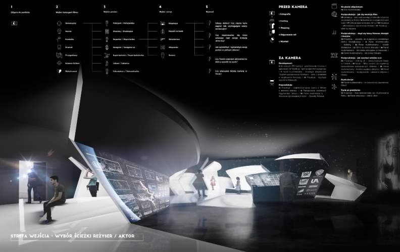 W odróżnieniu od dwóch poprzednich – tu nie będzie eksponatów. Nie spotkamy tam kamery czy reflektorów, ale będą modele, które demonstrują działanie różnych urządzeń, np. akwarium oświetleniowe – zagląda się do niego przez wizjer i można zaobserwować, jak zmiana różnych kluczy oświetleniowych wpływa na obraz filmowanej sytuacji. Będzie też mała makieta planu filmowego – gracz kieruje ruchem kamery, a jego zadaniem będzie odtworzenie pracy kamery tak jak w ujęciu pokazanym na ekranie. To ćwiczenie pokaże, jak trudne jest nadążanie za akcją w długim ujęciu, nie przerywanym cięciami. Zabawa na wystawie będzie też miała charakter gier strategicznych: jako osoba wyszukująca lokacje zdjęciowe będziemy musieli podjąć decyzję, czy podpiszemy umowę z regionalnym funduszem filmowym, żeby czerpać z tego jakieś korzyści, ale wtedy będziemy musieli nakręcić film w lokalizacji, którą ten fundusz nam wskaże.