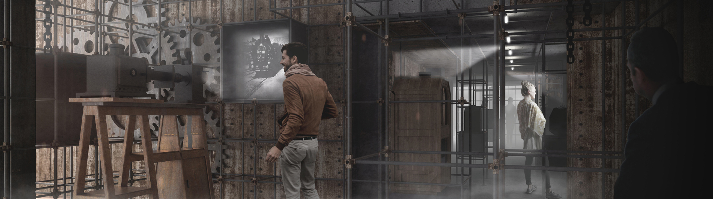 Wystawa będzie się mieściła na poziomie -1 i zajmie powierzchnię ok. 1300 m kw. Scenograficzną stylistyką całej prezentacji będzie steampunk (rodzaj fantazji futurystycznej, ale odsadzonej w XIX wieku i związanej z przemysłowymi urządzeniami parowymi – rury, śruby, pokrętła), a kolorystyka ma oscylować wokół bieli, szarości i brązów. – Na wystawie znajdzie się ponad 8 tysięcy rur, a złączek i kolanek – dwa razy tyle. Same stanowiska też będą stylizowane – np. gogle viarowe zostały zaprojektowane jak maska spawalnicza osadzona w świecie Conana Barbarzyńcy. Do oglądania filmów reklamowych posłuży peryskop. Stanowiska fotoplastykonu pomyślano w kształcie robotobeczek parowych, a pokazywać będą współczesną Łódź. Ekspozycję mamy także usłyszeć – stukoty, warkoty, sprzężenia, zgrzyty, świsty odgłosy pracy różnych urządzeń związanych z filmem – to będzie jej klimat audialny.