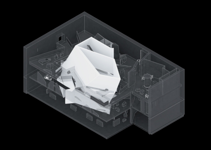 W wysokiej hali, w której mieści się wystawa, zaprojektowany został tzw. element centralny w postaci efektownego wydłużonego kryształu – białej bryły od podłogi aż po sufit przez trzy poziomy. Wewnątrz elementu centralnego znajdą się strefy niechronologiczne wystawy – krytyka, festiwale i na samym dole strefa dla dzieci. Zwiedzający na każdym poziomie będzie mógł przechodzić przez te strefy wewnątrz bryły i konfrontować widzenie kina przez widza z perspektywą krytyków, animatorów i kultury filmowej.