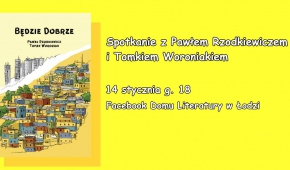 Na Facebooku Domu Literatury odbędzie się spotkanie z autorami komiksu "Będzie dobrze" (Timof i cisi wspólnicy, 2020) - Pawłem Rzodkiewiczem i Tomkiem Woroniakiem. Spotkanie poprowadzi Marcin Bałczewski.