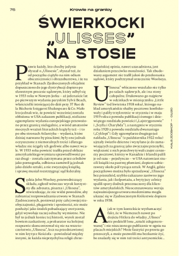 FELIETON. Prawie każdy, kto choćby jedynie słyszał o „Ulissesie”, słyszał też, że od początku ciążyło na nim odium obsceniczności i obrazoburstwa, i że na przykład w Stanach Zjednoczonych oficjalnie dopuszczono do jego dystrybucji dopiero po sławetnym procesie sądowym, który odbył się w 1933 roku w Nowym Jorku – aż jedenaście lat po pierwszym wydaniu paryskim Sylvii Beach, właścicielki istniejącej do dziś przy 37 Rue de la Bûcherie księgarni Shakespeare & Co. Pisze Maciej Świerkocki.