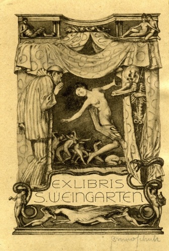 „Teatrum życia i śmierci” to ekslibris, który sto lat temu Bruno Schulz wykonał dla Stanisława Weingartena, mecenasa i kolekcjonera sztuki, jednego ze swoich przyjaciół. Tego samego, którego Schulz kilka razy wprowadził do cyklu grafik cliché-verre „Xięga bałwochwalcza”. Tytuł nadał ekslibrisowi Jerzy Ficowski, poeta, znawca ludowej poezji żydowskiej i pierwszy po wojnie największy badacz twórczości Schulza. Stulecie powstania miniatury wykorzystał Zbigniew Milczarek, kolekcjoner, regionalista z Tomaszowa Mazowieckiego, do poszerzenia autorskiej wystawy „Zainstalowani na wieczność – Bruno Schulz i Drohobycz” o jego „łódzki epizod biografii egzystencjalnej, artystycznej i pośmiertnej” (dotąd wystawa była pokazywana w pięciu miastach, w tym w Tomaszowie).Schulz był w Łodzi przynajmniej raz – przed podróżą w 1938 r. do Paryża. Wiemy to z informacji, jaką przekazała Jerzemu Ficowskiemu Maria Ray Chazen, pianistka i przyjaciółka Schulza. W korespondencji zachowały się ślady kilku jego wizyt u Chazen, która mieszkała wtedy przy al. Kościuszki 46. A wcześniej? Od 1932 r. pracował tu jako przedstawiciel firmy naftowej „Galicja” Stanisław Weingarten, wynajmując pokój przy Sienkiewicza 63 – po sąsiedzku mieszkali rodzice Joanny Kulmowej, zapamiętała go też sama poetka i po latach opisała w książce „Topografia myślenia” jego pokój wypełniony pracami Schulza. [...]