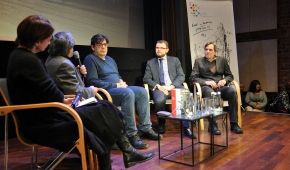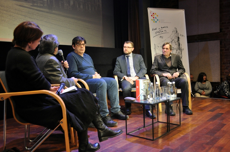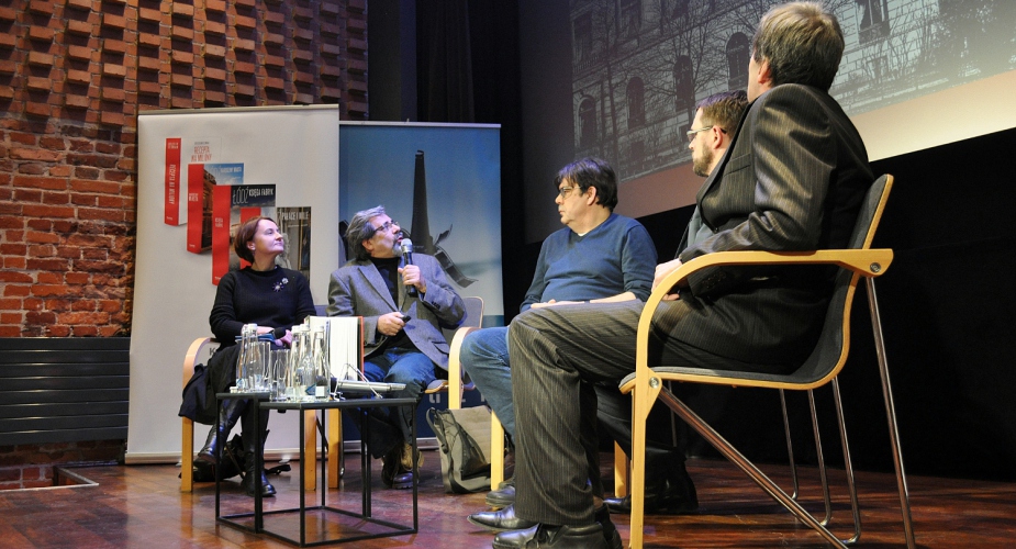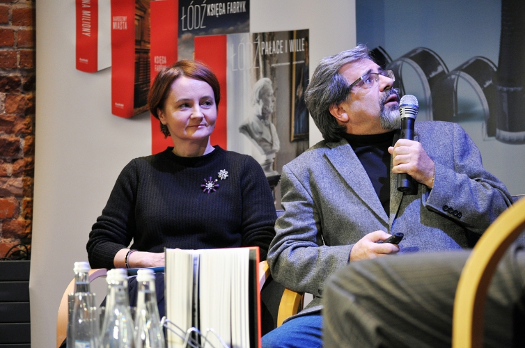 Jonathanowi towarzyszył syn James West, z którym wspólnie wyjaśnili różnice językowe i kulturowe w rozumieniu pojęcia „pałac”. Na co dzień prowadzą w Łodzi firmę zajmującą się tłumaczeniami „James West Translations”. Podczas spotkania w Muzeum Kinematografii prowadzonego przez Marzenę Bomanowską publiczność mogła nie tylko wysłuchać interesującej dyskusji, ale również zobaczyć unikatowe fotografie omawianych obiektów. Niektóre z nich zostały wykonane przez Kusińskiego. – Starałem się nie stosować żadnych specyficznych kadrów, na każdym zdjęciu światło jest naturalne. To jest zasługa Łodzi, nie moja – przyznał skromnie autor i właściciel wydawnictwa, które opublikowało książkę.Krzysztof Stefański zwrócił uwagę na uniwersalność słowa pałac. – Siedziby sądów najwyższych były nazywane pałacami. Każdy władca europejski w XVIII i XIX wieku starał się wznieść budowlę, która zostałaby zbudowana na wzór Wersalu lub nawet konkurowała z nim, choćby podwiedeński Schönbrunn. My natomiast mamy Wilanów. Jedna rodzina nazywała rezydencję dworem, druga pałacem – powiedział profesor Uniwersytetu Łódzkiego, po czym wymienił kilka budowli, które według niego są pałacami, m.in. Heinzla w Łagiewnikach czy Biedermanna u zbiegu ulic Północnej i Franciszkańskiej. Wyróżnił dwa rodzaje tego typu obiektów – w stylu włoskim (miejskim, dominujące w Łodzi) i francuskim. Połączeniem obu tych tradycji jest pałac Poznańskich, wzniesiony w zwartej zabudowie, posiadający jednak obszerny ogród na tyłach. Krzysztof Stefański wskazał też na trzy znaczenia słowa willa, jako: posiadłość ziemska (w starożytności), ogród (w renesansie) i dom w ogrodzie (od XIX wieku). – Willa Herbstów, która z niewiadomych przyczyn została niedawno nazwana pałacem, nawiązuje do budowli drezdeńskich. W przypadku niektórych obiektów nie wiadomo, czy to wille, czy pałace, często decydują o tym detale. Trzeba zostawić margines interpretacyjny – przyznał.