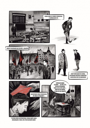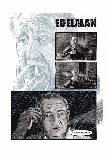 Marek Edelman. Jeden z przywódców powstania w warszawskim getcie, działacz społeczny i polityczny, lekarz. Człowiek, który nie chciał być bezczynną ofiarą, przymykającą oczy na zło. Niemałym sentymentem darzą go dwa miasta, z którymi był związany – Łódź i Warszawa. Nic dziwnego, że ogłosiły one 2019 jego rokiem. To wiąże się oczywiście z bardziej masowym w charakterze przybliżaniem jego postaci. Powstają książki, albumy, filmy… Warto w takim wypadku przełamać rutynę. Biblioteka Centrum Dialogu im. Marka Edelmana w Łodzi postanowiła zatem zaprezentować historię Marka Edelmana na kartach komiksu.„Edelman” jest ciekawym komiksem. Nietypowym, nie za długim. Jego format jest większy od najczęściej wykorzystywanego, co daje pole do popisu rysownikowi. Ponieważ dzięki formatowi rysunki Michała Arkusińskiego nie muszą być bardzo upraszczane, są bardzo realistyczne, a przy tym klimatyczne. Prostsze mogłyby zabić atmosferę, którą rysownik stara się nadać – skutecznie – opowieści. Arkusiński sprytnie wykorzystuje również kolory, których jest niewiele, ale pojawiają się w historii, by podkreślić w opowiadanej historii to, co w niej najważniejsze.