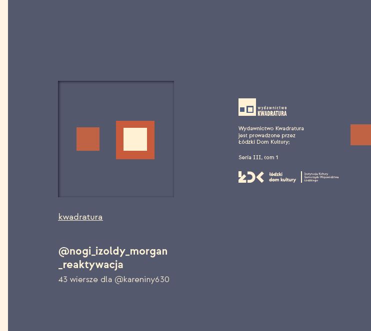 Książka "43 wiersze dla @kareniny630" zwyciężyła w drugiej edycji konkursu Wydawnictwa Kwadratura. Tom otwiera trzecią serię poetycką naszej łódzkiej oficyny. A nowa seria to także nowa szata graficzna z eleganckimi tłoczeniami.