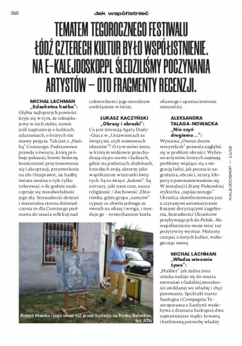 Cały artykuł można przeczytać we „Kalejdoskopie" 11/19 – do kupienia w Łódzkim Domu Kultury, punktach Ruchu S.A., Kolportera, Garmond-Press, alonach Empik i łódzkiej Księgarni Ossolineum. A także w prenumeracie (w opcji darmowa dostawa do wybranego kiosku Ruchu): TUTAJ