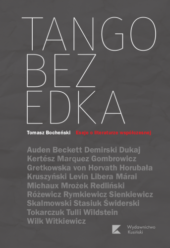Tango bez EdkaPiękne może być tango z literaturą, gdy słyszy się jej kroki, gdy tańczy się w rytm muzyki zdań. Gdyby głos literatury zamarł albo upodobnił się do któregoś z pospolitych rejestrów, zawsze można pocieszać się książkami sprzed upadku. Możliwe, że głos współczesnej opowieści nie brzmi już tak donośnie jak kiedyś, że coraz więcej pospolitego gadania udającego literaturę, możliwe, że w ogromnej produkcji książek niknie głos suwerenny, dbający o niezależne mówienie. Ale przecież nadal słychać swobodną mowę, która nie rezygnuje z poznania świata za pomocą słowa. Książka ta wsłuchuje się w takie wolne głosy literackie. I unika, jak może, podszeptów natręta. Chce jeszcze tańczyć tango z literaturą – to jej namiętność i forma rozmowy.