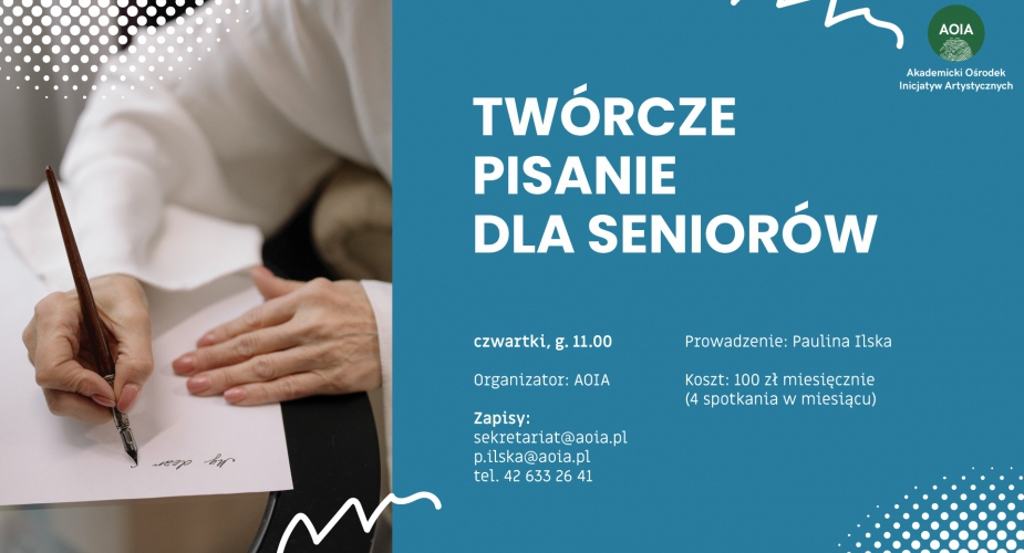 „Twórcze pisanie” to propozycja dla seniorek i seniorów szukających „swojego plemienia”, czyli grupy osób, które także próbują pisać. Gotowych spróbować zarówno indywidualnej pracy nad tekstem, jak i pracy w grupie, która będzie inspirować, konstruktywnie krytykować, wspierać – słowem, tworzyć ciekawą i bezpieczną przestrzeń do rozwoju.Program zajęć: