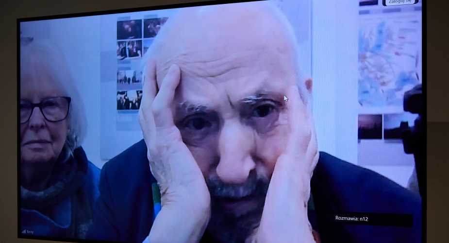 Richard Demarco podczas połączenia online z Muzeum Sztuki w Łodzi, fot. materiały prasowe