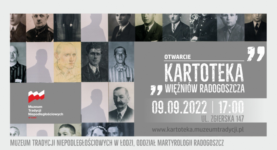 W Muzeum Tradycji Niepodległościowych w Łodzi (Oddział Martyrologii Radogoszcz), w przestrzeni wystawy stałej „Zabrał ich ogień… Piekło więzienia na Radogoszczu w świetle losów ludności Kraju Warty w okresie II wojny światowej” 9 IX o godz. 17 zostanie uruchomiona Kartoteka Więźniów Radogoszcza.
