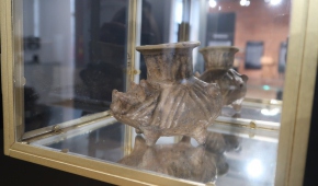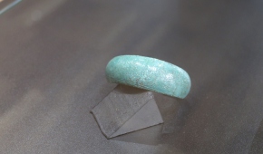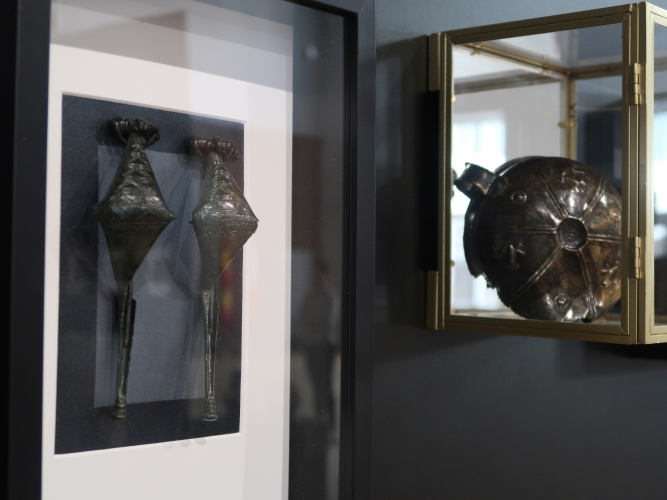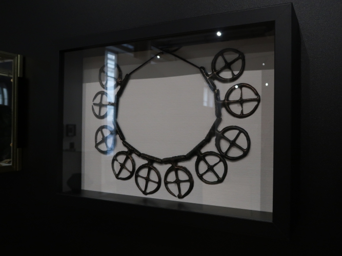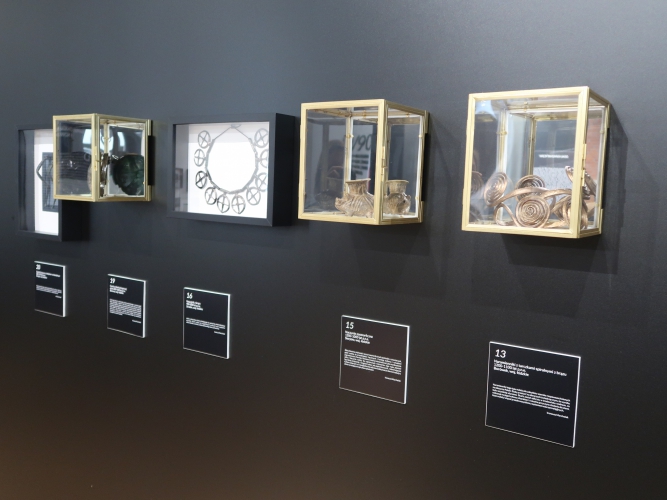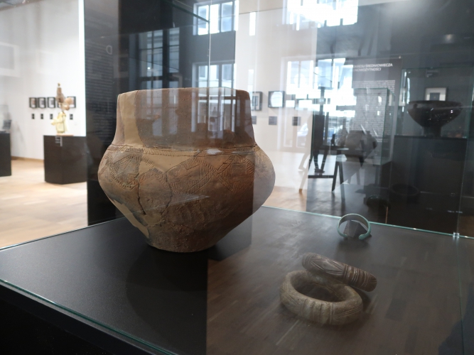 Na koniec coś o miejscu prezentacji. To nowo powstała przestrzeń muzeum przy placu Wolności – cieszy, że placówka zyskała nowe, a zarazem nowoczesne pomieszczenia, ale – moim zdaniem – niespecjalnie nadają się one do celów ekspozycyjnych. Zwłaszcza w przypadku takich obiektów, jakimi dysponuje to muzeum. Monety, biżuteria, ceramika potrzebują odpowiedniego klimatu – takiego operowania skupionym światłem, które wydobywa je z mroku i podkreśla ich walory. Wtedy odczucie obcowania ze skarbem jest mocniejsze niż w dziennym świetle, które dodatkowo ze wszystkich stron odbija się od szklanych gablotek, utrudniając skupienie wzroku. A tutaj tak właśnie jest. Duża, techniczna, biała przestrzeń, wypełniona dziennym światłem daleka jest od „muzealnej świątyni”. Autorka aranżacji Elżbieta Górska próbowała wybrnąć z trudnej sytuacji i nadać wystawie intymności, umieszczając obiekty w małych gablotkach i operując czernią. Owe zabiegi ratują odświętność tego pokazu.