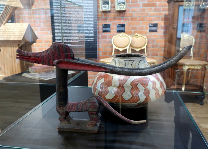 W założeniu miał to być hołd dla ludzi – od wykonawców prezentowanych przedmiotów, przez ich posiadaczy i tych, którzy je odnaleźli, po renowatorów zabytków i opiekujących się nimi muzealników. I udało się to osiągnąć – szacunek dla ludzi i przedmiotów udziela się także widzowi. Bo też i przedmioty to nie byle jakie. Każdy z trzynastu merytorycznych działów muzeum mógł się pochwalić swoimi skarbami (działalność czternastego, niezwykle istotnego Działu Konserwacji i Badań nad Zabytkami zaznaczono archiwalnym zdjęciem z pracowni). Imponuje czasowy i przestrzenny zasięg pochodzenia zbiorów. Są tu obiekty powstałe przed 40 tysiącami lat i takie z ostatniego czasu, są pozyskane w Łodzi i pochodzące z Chin, Afryki, Ameryki Południowej, Australii czy Syberii…Wiele skarbów archeologicznych odnaleziono na terenie województwa łódzkiego. W opisach towarzyszących obiektom umieszczono nie tylko informacje o miejscu ich znalezienia, ale m.in. i o okolicznościach, w jakich to się stało, jak trafiły do muzeum, co przedstawiają. To duży plus.