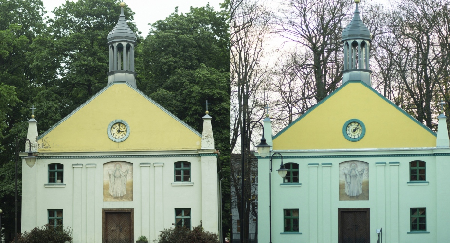 kościół przed renowacją i po niej, fot. materiały prasowe