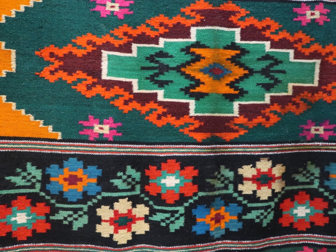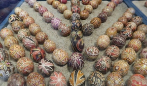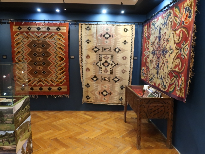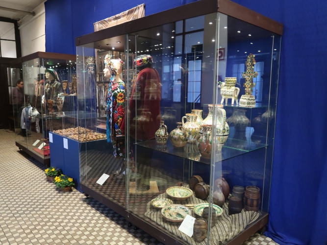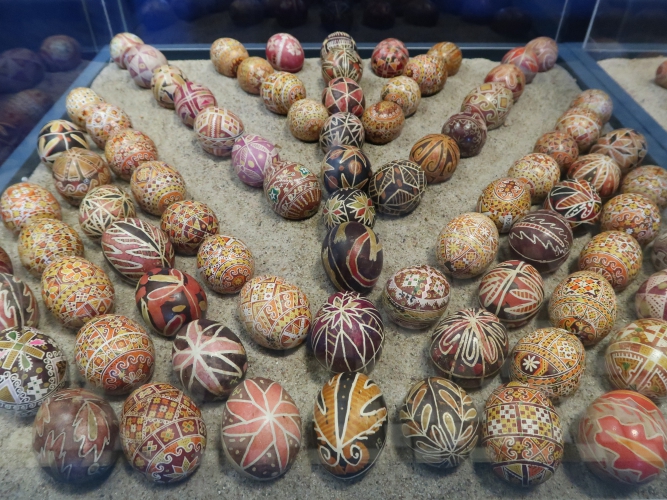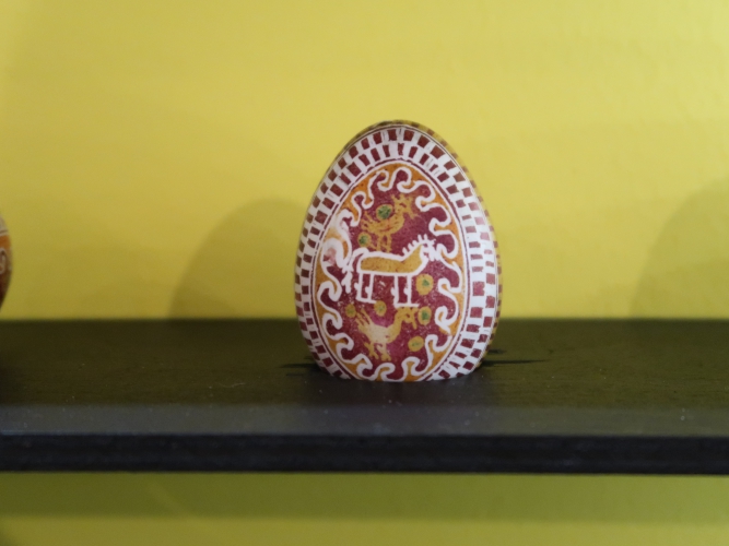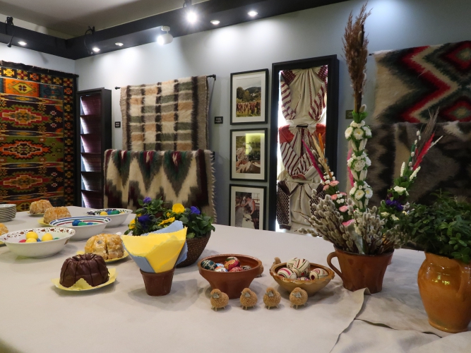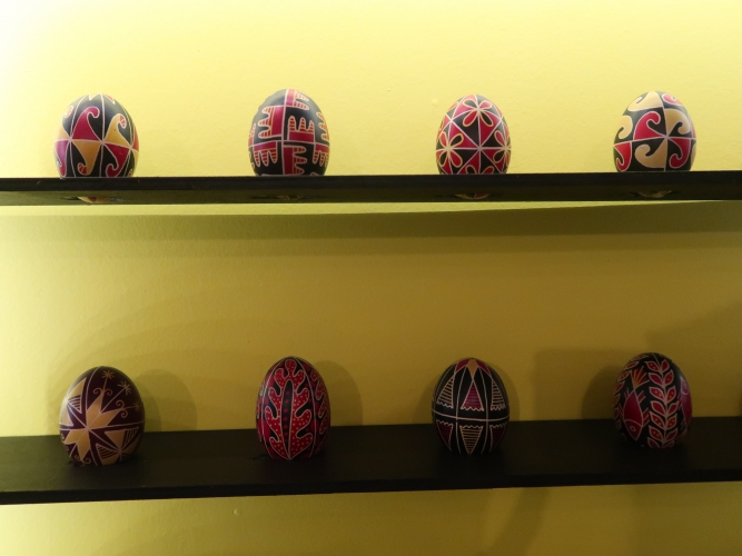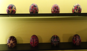 Gdy na Ukrainie wybuchła wojna, Alicja Woźniak, kustosz z Muzeum Archeologicznego i Etnograficznego, dzięki kontaktom której muzeum uzupełniło swoje ciekawe zbiory ludowej sztuki ukraińskiej i strojów, postanowiła oddać hołd ukraińskim przyjaciołom, a zarazem zagospodarować czas i emocje uchodźców, którzy zostali w Łodzi. To nie miała być po prostu wystawa, ale miejsce spotkań i wspólnych działań Ukraińców i Polaków. Stąd koncepcja dużego rodzinnego stołu – świątecznego, bo wystawę „W dialogu. Ukraińskie tradycje przy polskim stole” otwarto przed Wielkanocą – wokół którego zbudowano ekspozycję wspomnianych zbiorów.Można się przekonać, na jak wysokim poziomie stało huculskie (i nie tylko, choć to głównie ono reprezentowane jest na ekspozycji) rzemiosło z przełomu XIX i XX wieku. Ceramika, drewniane i metalowe krzyże, drewniane świeczniki, stroje ludowe we wspaniałych kolorach i formach (prezentowane w gablocie przy wejściu do muzeum, bo na samej wystawie by się nie zmieściły), zapaski, biżuteria, piękne, malowane na szkle święte obrazy (z Pokucia), kilimy (z Glinian w okolicach Lwowa – to już nie sztuka ludowa, ale mieszczańska), łyżniki – koce tkane z grubej wełny, no i słynne pisanki. Mnóstwo pisanek, a każda inna – warto maksymalnie zbliżyć wzrok (organizatorzy wystawy to ułatwili, umieszczając pisanki na półeczkach na wysokości oczu i nie przesłaniając ich szkłem) i dobrze się przyjrzeć mikroskopijnym, cyzelowanym wzorkom i figurkom zwierząt. Są też pisanki o wzornictwie zbliżonym do modernistycznego designu.