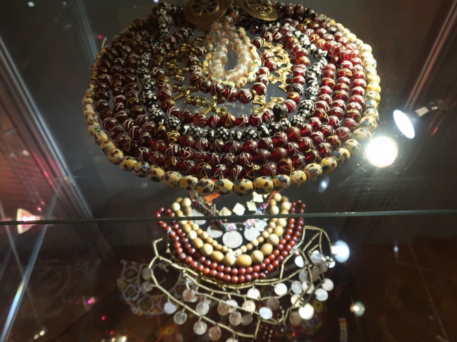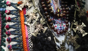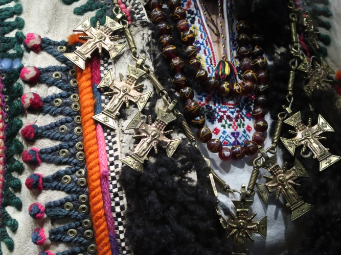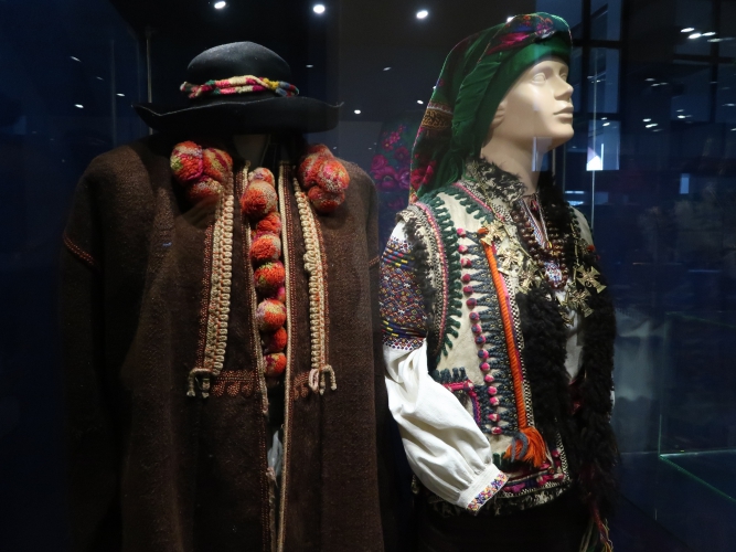 Gdy ogląda się te cudeńka, żal budzi świadomość pewnego upadku huculskiej kultury – na wystawie obok ubioru z początku XX wieku znalazł się współczesny ślubny strój damski, zdobiony błyszczącymi, kolorowymi koralikami. Nie do zniesienia tandetny. Są i współczesne koralikowe naszyjniki, tak różne od dawnych, z dużych paciorków ze szkła weneckiego czy ceramiki albo zdobionych monetami czy metalowymi krzyżykami (choć ta nowsza biżuteria też ma swój urok).