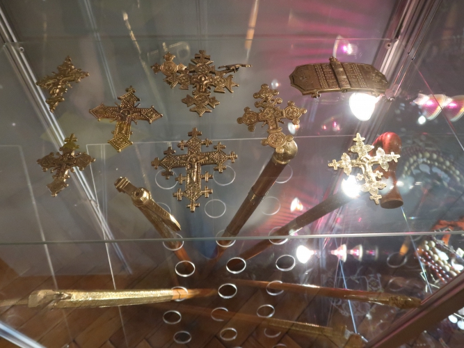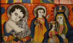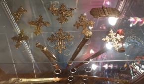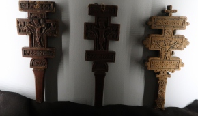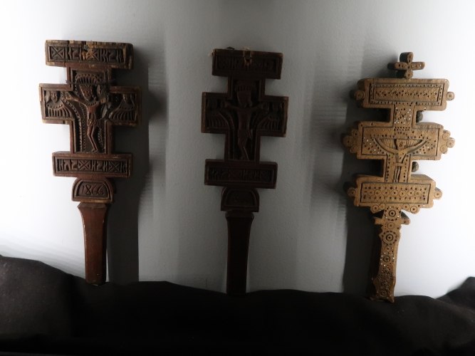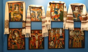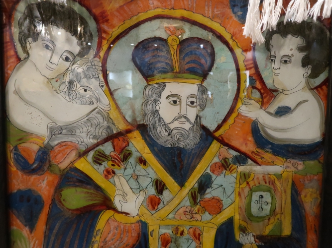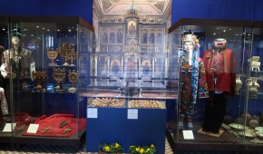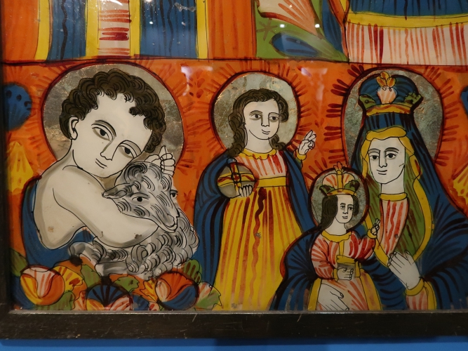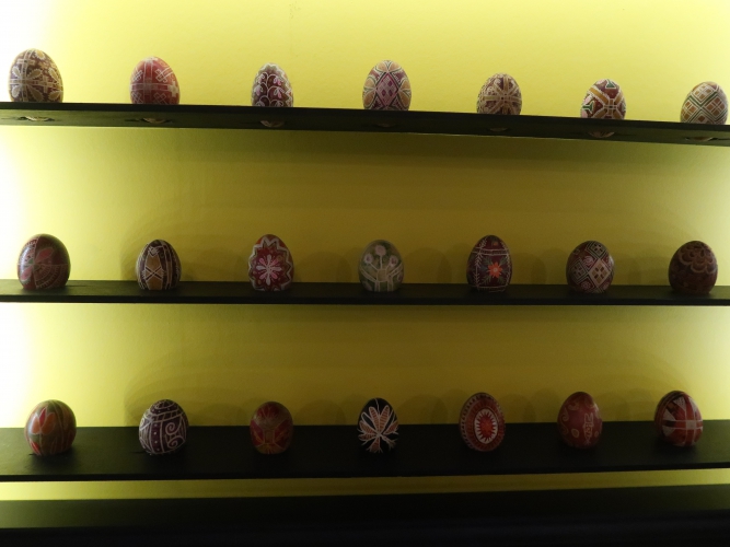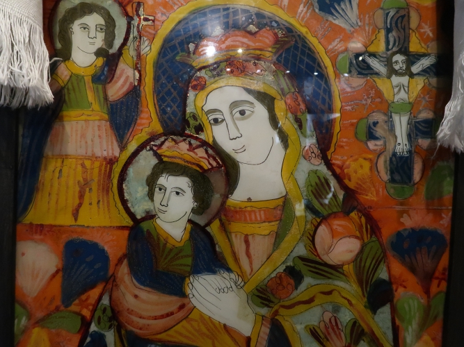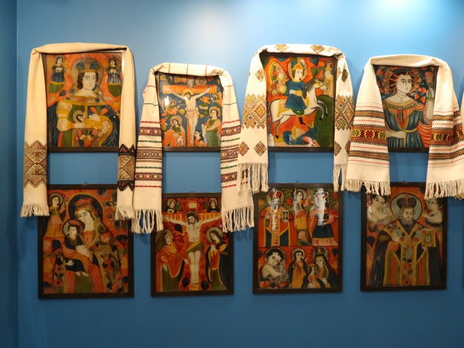 Wystawę dopowiadają filmy i zdjęcia z badań terenowych, pokazujące m.in. powstawanie pisanek czy huculski ślub. Dla uzupełnienia – nie wiem, czy potrzebnie, bo to jednak zupełnie inna bajka – na wystawie umieszczono również dawne ukraińskie banknoty: karbowańce czy hrywny. Zbędne wydają mi się także barwy z ukraińskiej flagi przeniesione na ściany – błękit pod pokuckimi szklanymi świętymi obrazami otulonymi rucznikami jeszcze się broni, ale jaskrawa żółć jako tło dla niewielkich pisanek z kunsztownymi zdobieniami to zły pomysł – utrudnia ich podziwianie i zmienia ich subtelną kolorystykę. Tam, gdzie ściany pozostały neutralnie jasnoszare, wszystkie te wspaniałe, często wielobarwne obiekty z różnych dziedzin sztuki i rzemiosła prezentują się najlepiej. Wszelkie ewentualne niedociągnięcia kładę na karb pośpiechu – od pomysłu do wykonania minęły bowiem zaledwie trzy tygodnie. A wystawa godna jest obejrzenia.