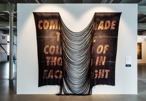 „Solidarity” to dzieło młodej amerykańskiej artystki poruszające tak istotne w dzisiejszym świecie aspekty, jak wspólnota, współpraca i relacje międzyludzkie. Praca, zbudowana na bazie jednej osnowy, której nici zwisają luźno w części środkowej, skrywa w sobie przekaz wyrażony napisem: „Wspólnota powstała dzięki współpracy tych, którzy zainwestowali we wzajemną walkę”. Jego odczytanie jest możliwe tylko poprzez performatywny akt rozciągnięcia materiału, do czego, z uwagi na skalę, wymagana jest współpraca kilku osób. To metafora relacji opartych na silnych więziach, współdziałaniu i solidarności.